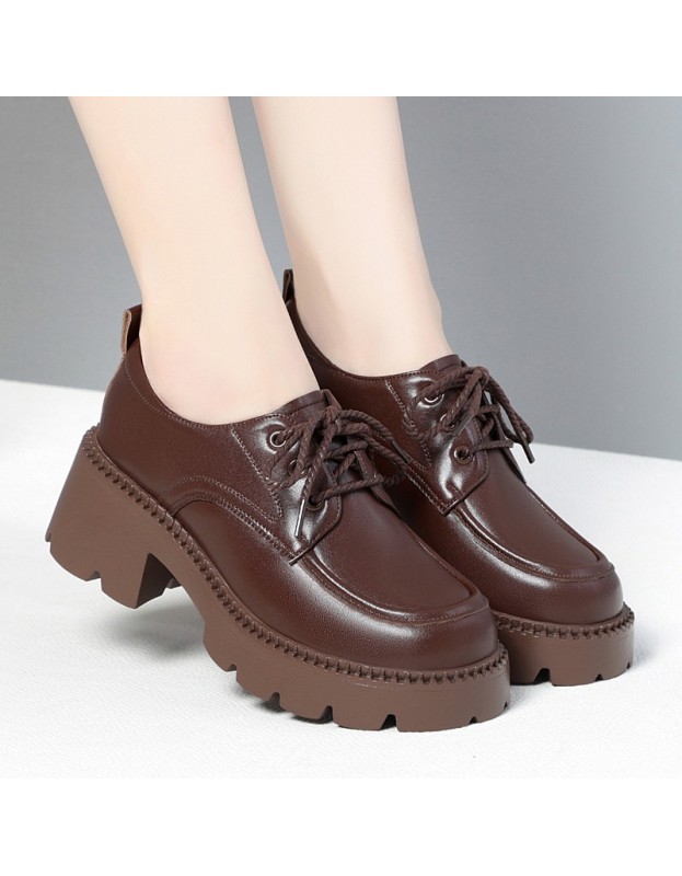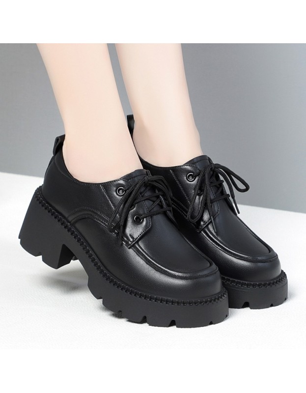Genuine leather hundred with small leather shoes thick bottom heightening Le Fu shoes British style one foot stirrup single shoes